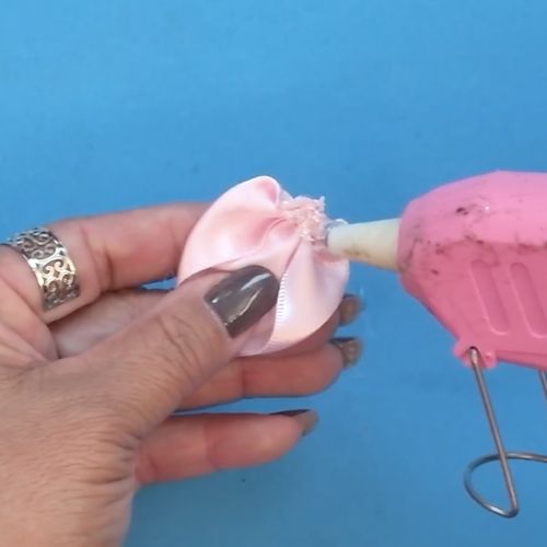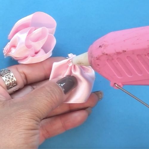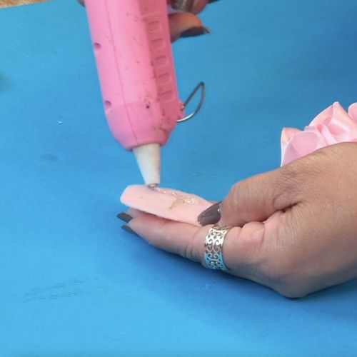 10. Aplique cola quente na base inferior de uma pétala (lado opaco da fita).