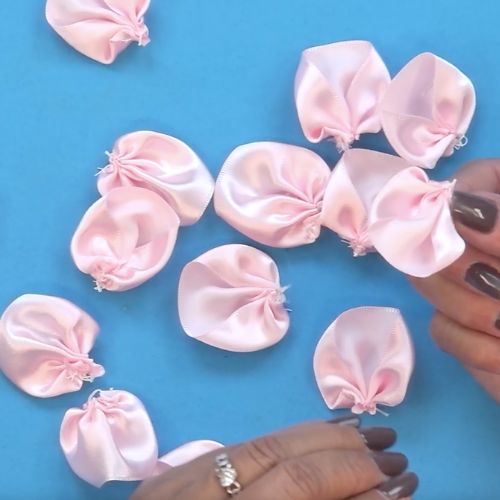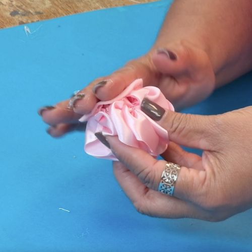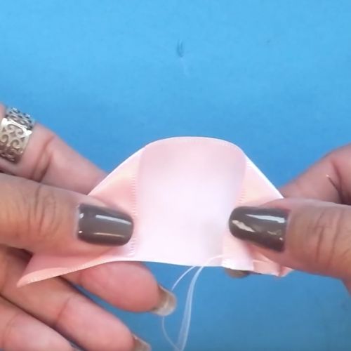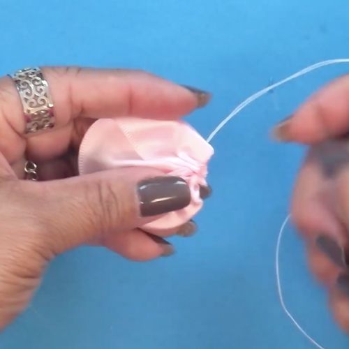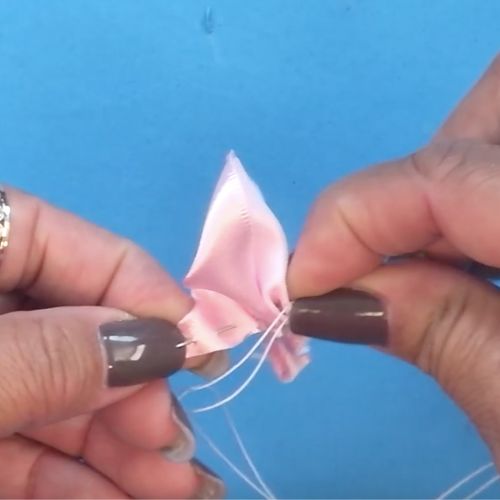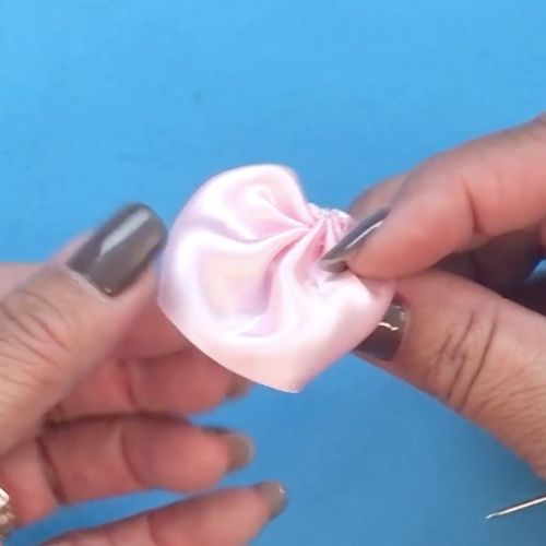 07. Puxe o fio para franzir e arremate, formando a pétala da flor.