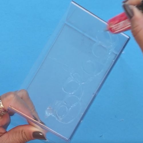 21. Aplique cola universal na parte inferior da caixa de acrílico.