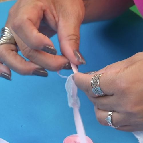 25. Passe a fita de cetim nº2 pelo passafitas.