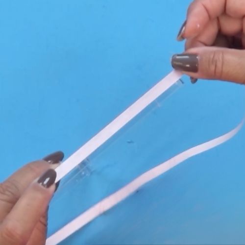 03. Dobre a ponta de um dos pedaços de fita, formando um triângulo.